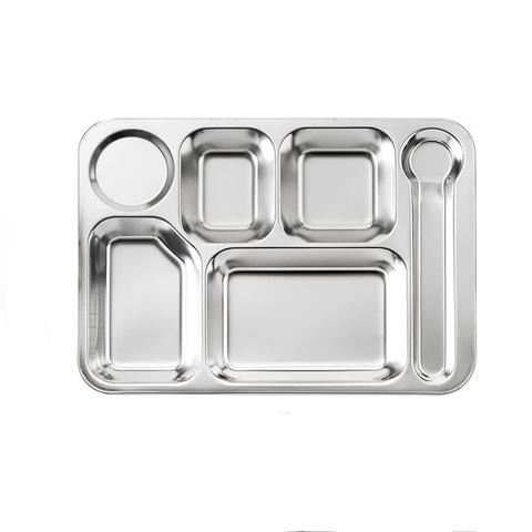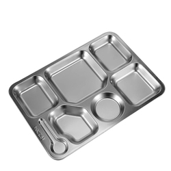 Compartimiento de 304 secciones de acero inoxidable 5/6, plato de almuerzo de cena dividido Rectangular, bandeja de comida, plato para servir