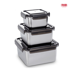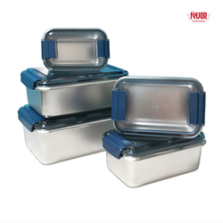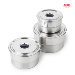 Contenedores redondos de almacenamiento de alimentos de metal personalizados, tapas elásticas de silicona, contenedor de almacenamiento de alimentos de acero inoxidable 304