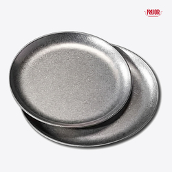 Plato de cena Retro de acero inoxidable, vajilla de estilo Vintage, acabado antiguo, plato de cena redondo, vajilla, bandeja de comida, cubiertos Vintage