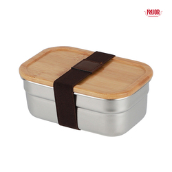 Fiambrera Bento con tapa de madera de bambú, fiambrera de bambú de acero inoxidable, fiambrera de bambú para oficina, contenedor de alimentos aislado