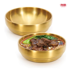 Juego de cuencos de servicio de metal de grado alimenticio con logotipo personalizado, tazón dorado cepillado de acero inoxidable 201, tazón de sopa de arroz con fideos ramen, venta al por mayor