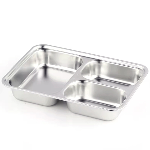 304/201 Acero inoxidable pequeño tres compartimentos sección dividida platos separados plato cena almuerzo comida bandeja para niños