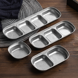Tazón de inmersión para salsa de condimento dividido de acero inoxidable Retro, 1/2/3/4 compartimentos, rejillas, bandeja para condimentos, placa de Metal para condimentos