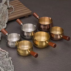 Tazas de acero inoxidable para salsas, cucharas, tazas de leche de metal de 60/120/180ml con mango de madera, cacerola pequeña de acero inoxidable