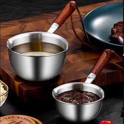 Olla para derretir Mantequilla de acero inoxidable, sartén para aceite caliente, sartén multiusos, calentador de leche con mango de madera para calentar chocolate